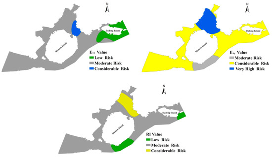 Spatial distribution map of the potential ecological risk of PTEs in Xiamen Bay.