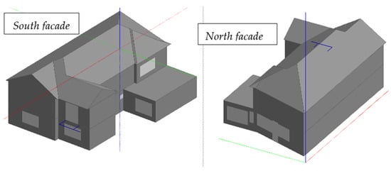 This part of the project was conducted using Design-Builder Version 6.1.7.007 software and Energy Plus 9.01 [] which can provide the possibility of analyzing the building from the dynamic point of view. The first step was the elaboration of the analyzed construction inside the software based on the real design of the house. Furthermore, the construction materials of the house were set in accordance with the real situation (see Figure 4).