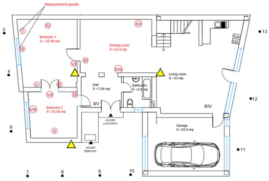 The studied building is placed in Cluj-Napoca city, ROMANIA (see Figure 1) and presents a ground floor and an attic, forming together a total area of 275.95 m2, while the heated area is 239.96 m2. The construction was built in 1937, but during this time it had suffered massive changes, including a deep thermal renovation. The brick walls were insulated with a 10 cm layer of expanded polystyrene and the old frame wood double-pane windows were replaced with double glazing PVC windows presenting high thermal resistance of 0.77 m2K/W and low air infiltrations. The house is heated using a natural gas boiler connected to the steel panel radiators, installed into the rooms.