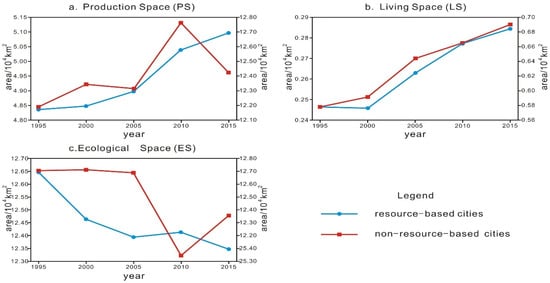 (1) From 1995 to 2015, the PLES of resource-based cities and non-resource-based cities in the middle reaches of the Yangtze River changed sharply. In different periods of this process, the following phenomena exist in both types of cities. The ES of was compressed by the PS and LS, and the ES of the resource-based cities was compressed for a longer period. That was not conducive to ecological environment protection of the urban agglomeration in the middle reaches of the Yangtze River. The LS and ES mainly compressed the PS. This phenomenon occurs for a longer time in non-resource-based cities, which did not facilitate economic production enhancement.