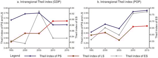 Interregional and intraregional Theil index values of the PLES, 1995–2015.