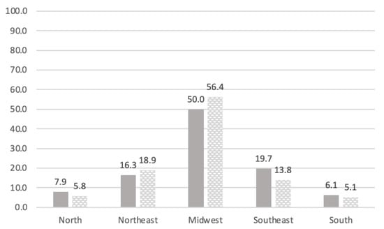 Faced with the Federal government’s denial, each Brazilian state adopted individual programs to contain the pandemic. The dates of confinement, when applied, varied considerably. The Federal District (FD), residence to most of this study’s survey respondents, was one of the first to declare lockdown. The dates presented in Figure 3 are based on the FD resolutions, which illustrate the period of each study, in the first and second COVID-19 outbreak in Brazil. Figure 4 presents the number of respondents per region.