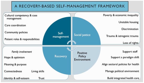 - Kemp, V. Use of ‘chronic disease self-management strategies’ in mental healthcare. Curr. Opin. Psychiatry 2011, 24, 144–148. [Google Scholar] [CrossRef]