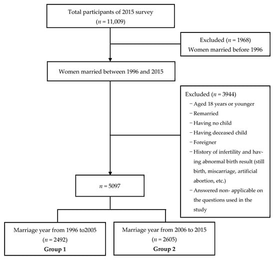 - Lee, S.; Park, J.; Lee, S.-Y.; Oh, M.; Choi, H.; Song, M. The 2015 National Survey on Fertility and Family Health and Welfare. 2015. Available online: https://www.kihasa.re.kr/en/publish/paper/research/view?seq=30703 (accessed on 24 November 2021).