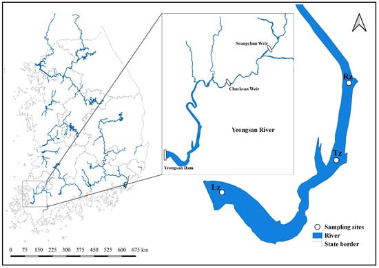 - Lee, Y.G.; An, K.G.; Ha, P.T.; Lee, K.Y.; Kang, J.H.; Cha, S.M.; Cho, K.H.; Lee, Y.S.; Chang, I.S.; Kim, K.W.; et al. Decadal and seasonal scale changes of an artificial lake environment after blocking tidal flows in the Yeongsan Estuary region, Korea. Sci. Total Environ. 2009, 407, 6063–6072. [Google Scholar] [CrossRef]