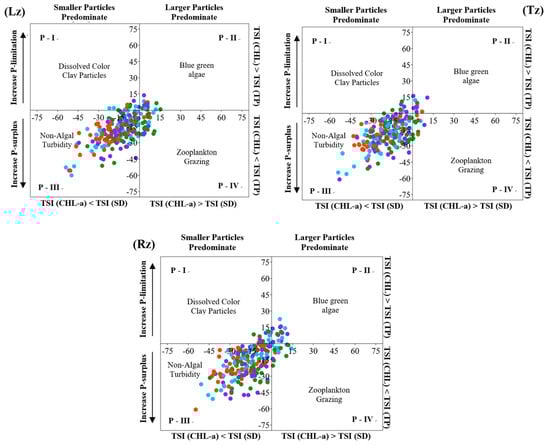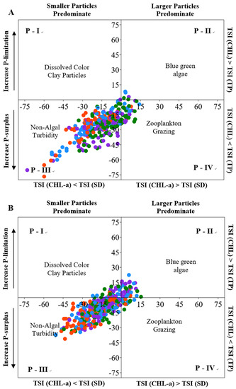 2.3. Trophic State Index Deviation and Non-Algal Turbidity