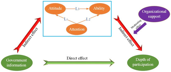 Individuals can obtain direct value from information, so they pay selective attention to information based on their own needs [19]. Krupka et al. verify through experiments that when individual attention is drawn to norms, individual behaviour becomes more inclined to comply with norms, so government information can affect farmers’ attention [20]. As individuals continue to pay more attention to certain information, individuals receive more information about the governance of rural human settlements, such as governance significance and skills. This works to change individual attitudes and ability to participate. Therefore, the degree of attention can affect both the attitude of farmers and the ability of farmers to participate (L1, L2). In addition, farmers’ long-term attention behavior will stimulate farmers’ participation behavior. Thus, this study puts forward the following assumptions.
