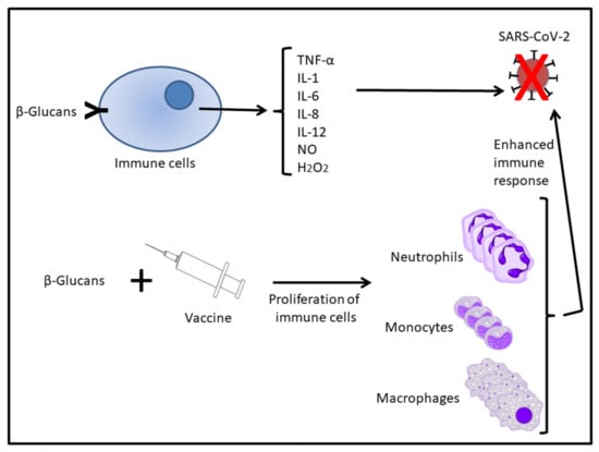 The aim of the present review is to present in detail the possible immunomodulatory effects of β-glucans and their possible use as oral adjuvants for vaccines against SARS-CoV-2. Glucans as biological response modifiers could be a complementary strategy to vaccination. Oral β-glucans have been described as prophylactic supplements to boost the immune response and to attenuate the symptoms of COVID-19 []. The use of these compounds could be a key element by aiding in the efficacy of vaccines against SARS-CoV2, and thus be accurate in controlling the COVID-19 pandemic.