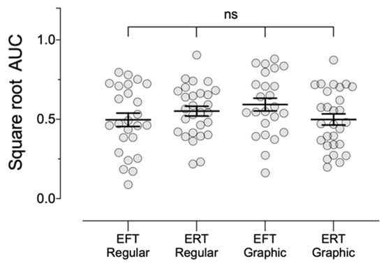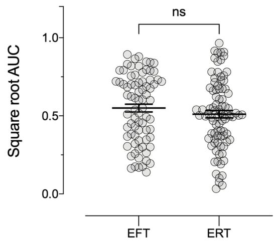 Mean square root transformed area under the curve (AUC) values (±SEM) for Experiment 2. EFT—episodic future thinking; ERT—episodic recent thinking.