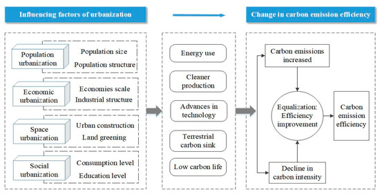 Influence mechanism of urbanization on carbon emission efficiency.