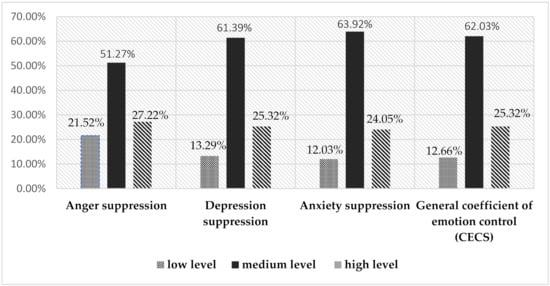Percentage spread of emotion suppression levels according to the CECS scale.
