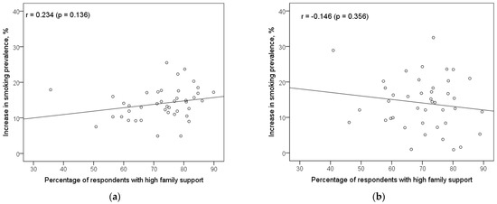 The following are available online at https://www.mdpi.com/article/10.3390/ijerph182312739/s1, Table S1. Country-level data on smoking prevalence, family support, and the association of these factors.