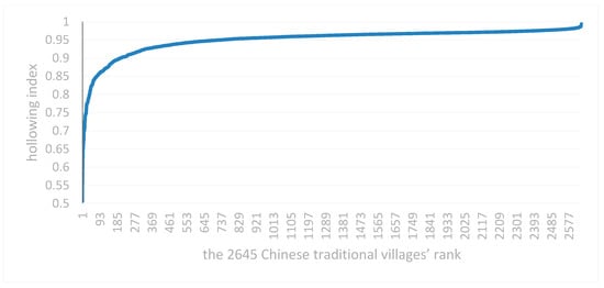 Overall distribution situation of Chinese traditional villages hollowing index. Note: The 2645 Chinese traditional village ranking was based on the village’s hollowing index.