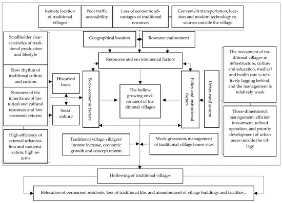 Influencing factors and mechanism framework of traditional villages hollowing.