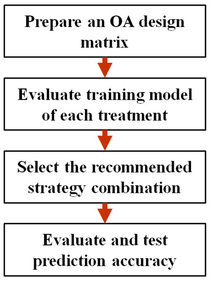 Step 2: Training model evaluation of each treatment. With the given training dataset and strategy combination for better training balanced accuracy, the classifier endeavors to optimize its hyper-parameters to obtain the optimal training balanced accuracy. Repeating the above experiment on different strategy combinations with random order thoroughly collects experimental data of the Taguchi method.