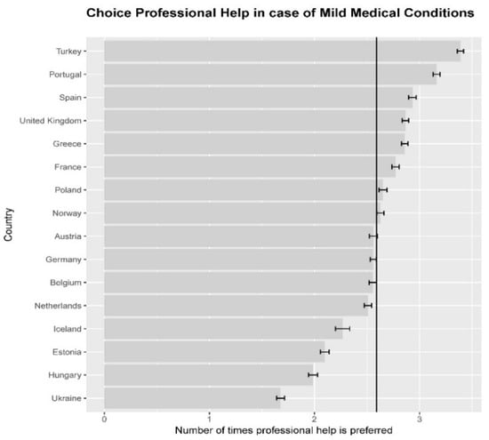 A previous multi-country study looking at country characteristics and healthcare outcomes and behaviors focused on aggregate group-level data. For instance, smoking and drinking, and prevalence of diseases have been explained by country characteristics such as the state of healthcare, and national culture []. Others studied differences between specific cultural groups within society, such as ethnicity [] to show differences in specific healthcare choice behavior. Although these studies show there are important differences between cultural groups in healthcare behavior, little is known about the factors related to healthcare preferences, and more specifically, preference for professional medical help by individuals from different countries.