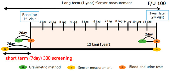 Direct measurements of indoor PM exposure were conducted through using the gravimetric analysis, sensors, light scattering method, and outdoor monitoring. In addition, PM concentration was repeatedly measured based on the period and life activities of the housewife. Gravimetric analysis was performed twice a year during the study period, and the sensor method was used continuously. Outdoor monitoring data were collected from the Korea Meteorological Administration. PM concentrations were compared and the exposure factors were identified. The effect of exposure to PM on the health was confirmed by using questionnaires and analysis of blood/urine samples. The addresses of all the participants were collected while determining the outdoor PM values, which were then compared with those published by the Air Korea Monitoring Network. Exposure values were corrected according to the exposure formula, as described previously [15,16].