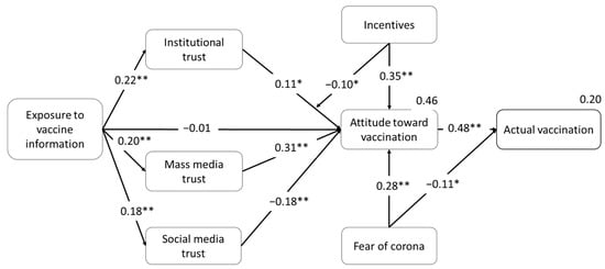 Zimand-Sheiner, D.; Kol, O.; Frydman, S.; Levy, S. To Be (Vaccinated) or Not to Be: The Effect of Media Exposure, Institutional Trust, and Incentives on Attitudes toward COVID-19 Vaccination. Int. J. Environ. Res. Public Health 2021, 18, 12894. https://doi.org/10.3390/ijerph182412894