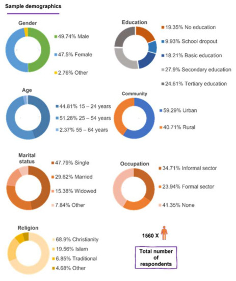 The socio-demographic characteristics of the 1560 respondents in the survey and regional data are summarized in Figure 2.