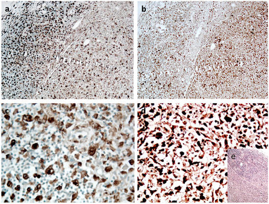 - Warnke, R.; Weiss, L.; Chan, J.; Cleary, M.; Dorfman, R. Tumours of the Lymph Nodes and Spleen; Armed Forces Institute of Pathology: Washington, DC, USA, 1995. [Google Scholar]