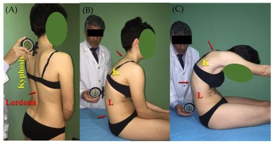 - Santonja, F. Las desviaciones sagitales del raquis y su relación con la práctica deportiva. In Escolar, Medicina y Deporte; Ferrer, V., Martínez, L., Santonja, F., Eds.; Diputación Provincial: Albacete, Spain, 1996; pp. 251–268. [Google Scholar]