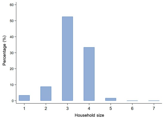 Nowadays, the phenomenon of family migration is becoming more and more prevalent, and this profile is backed by national data of CMDS in the last several years. In 2017, the average household size of national sample reached 3.14, and that of Wuhan metropolitan area was 3.21. More specifically, the three-person and four-person households’ modes accounted for more than four-fifth of all migrants in Wuhan metropolitan area (Figure 2). In the questionnaire, the “household size” refers to the number of family members who live together in inflow places from the broad sense. The family members here may be the respondents’ nephew, sister-in-law, or grandfather, who are not the immediate family members.