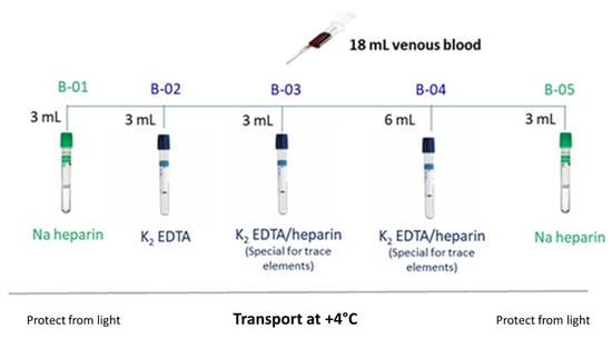 As an example, Figure 1 depicts the sample distribution after peripheral blood collection in order to proceed with the several analyses to be performed. Below, the primary and secondary study parameters are listed as well as other study parameters and occupational hygiene measurements.