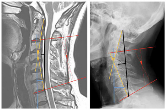 - Karabag, H.; Iplikcioglu, A.C. The Assessment of Upright Cervical Spinal Alignment Using Supine MRI Studies. Clin. Spine Surg. 2017, 30, E892–E895. [Google Scholar] [CrossRef]