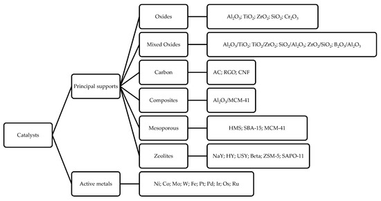 | Type | Catalyst | Support | Feedstock | Reaction Condition | Conversion (%) | Selectivity (%) | Ref. | ||
