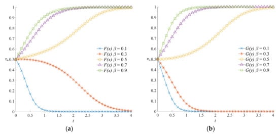 4.5.1. The Effect of β on the Evolution of the Emergency Incentive Game System