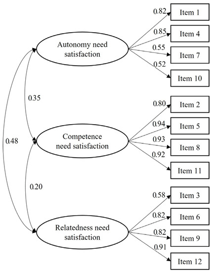 In line with the initial validation of the BPNS-ACS scale in Spanish young people [21], the three-factor confirmatory factor analysis model presented an acceptable fit to the data, and all factors loadings were greater than 0.50 supporting the relationship of each item with its pre-defined factor.. Furthermore, the observed moderate association between the autonomy, competence and relatedness factors follows the theoretical distinction between these three BPN proposed by Ryan and Deci [10]. Additionally, previous research on ACS [21] and physical activity [16,17,18] have observed autonomy, competence, and relatedness need satisfaction to be positively related with these behaviours. These findings are important and reinforce the need for self-efficacy and experience mastery for ACS, as suggested by Burgueño, González-Cutre, Sevil-Serrano, Herrador-Colmenero, Segura-Díaz, Medina-Casaubón and Chillon [21].