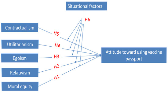 In the healthcare context, the moderating effect of situational factor has been confirmed on m-health acceptance [44], the impact of situational factors on selection of health information technology selection [45], and role of situational factors on individuals’ acceptance to share their healthcare information on electronic platforms [46]. As far as we are concerned, IP may be used in three different situations: international travel [47], domestic mobility [48], and public and private facilities access [10]. This research evaluates the use of the IP for travel and leisure regulation. These two situational factors may moderate the ethical judgment–attitude relationship.