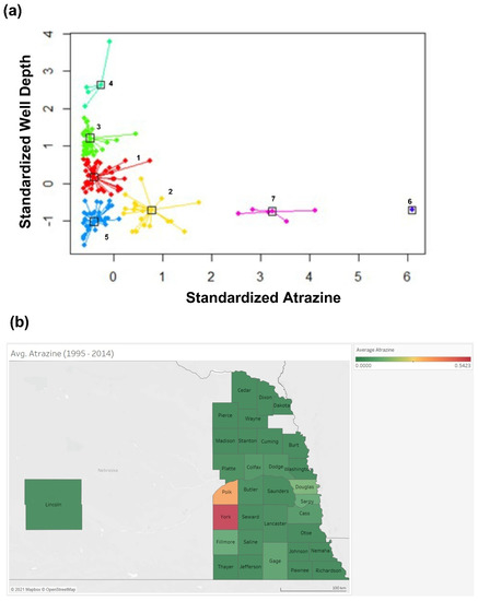 Furthermore, counties with low-level atrazine are more metropolitan than counties with high-level atrazine. In contrast to the wells in high-level atrazine counties, wells in low-level atrazine counties were mostly utilization wells. This suggests that low-level groundwater atrazine in cluster 5 may be due to excessive groundwater usage [44].
