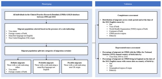 Thus, a valid migration phenotype, which is a transparent reproducible algorithm using clinical terminology codes [14], is needed to determine migration status for individuals of all ages using UK primary care EHRs in order to study a broad range of migration health outcomes. A migration phenotype should determine the migration status of a large number of individuals who use primary care and are representative of the UK migrant population. CPRD with its associated linked datasets is an ideal database to use in the development of this phenotype so that it can be used to study primary, secondary and tertiary healthcare utilisation, mortality and other health outcomes in migrants from European Union (EU) and non-EU countries.