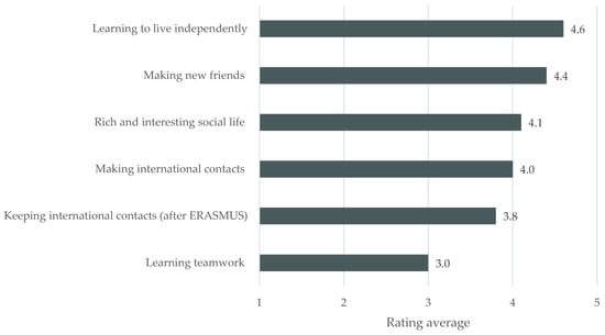 The ERASMUS participants evaluated learning independence, making friends, and international contacts highly, as presented in Figure 4.