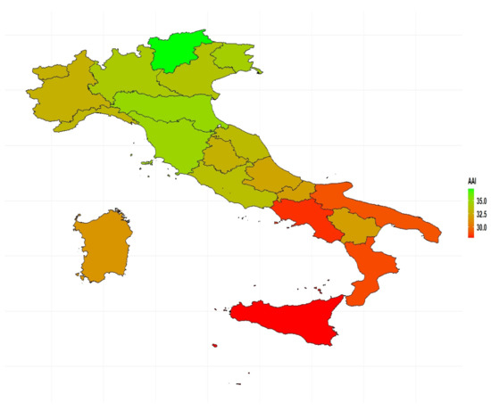 AAI by region. Year 2018. Source: Authors’ calculations based on numerous data sources from ISTAT.