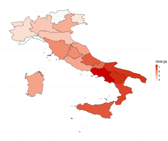 Gender gap in AAI by region. Year 2018. Authors’ calculations based on numerous data sources from ISTAT.