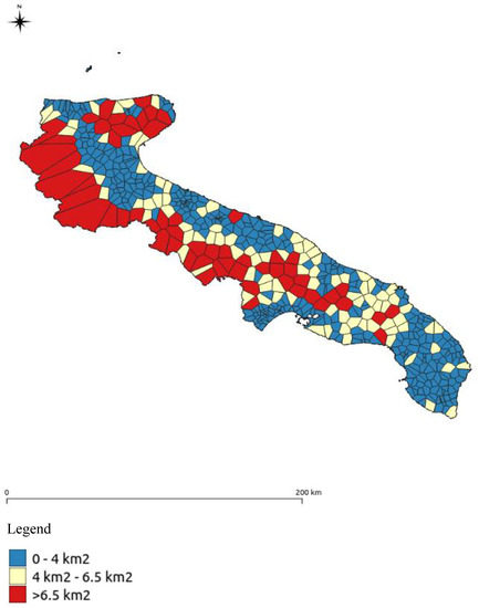 Puglia is one of the most important Italian regions for agricultural production, such as olives and vines (not requiring much water and humidity) [19]. It is usually at the top of the national production of oil, wine, and table grapes [20]. In addition, the production of oats and vegetables (artichokes, tomatoes, cabbage, and peppers) is very high [21]. Sheep breeding is very limited, and it seeks to increase the rearing of cattle, still scarce [22]. The fishing is carried out along the coast and, with the big boats, it is also undertaken on the high seas [19,23].