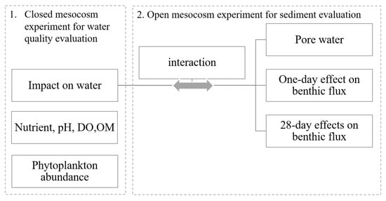 Two sets of mesocosm experiments were conducted to evaluate the impacts of Phoslock® (SePRO Corporation, Whitakers, NC, USA) on the CyanoHABs and the P in the water and sediment of Higgins Mill Pond (Figure 1). In the first field experiment, Phoslock® was applied in closed-bottom mesocosms to evaluate the impacts on the water column in July when a cyanobacteria bloom dominated the pond. In the second experiment, Phoslock® was sprayed in open-bottom limnocorral as a capping reagent on the sediment. On the 28th day after Phoslock® application, sediment cores were collected from the treated and untreated sites to compare changes in the sediment–water biogeochemical exchange rates. A one-day Phoslock® treatment experiment was also performed to determine the short-term impacts on benthic chemical fluxes.