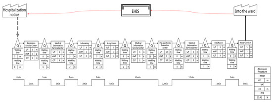 Using field research, the present study explored the processes and time spent on testing and examinations, as well as hospital admission procedures for patients prior to admission to Taichung Veterans General Hospital (TCVGH). This study used a questionnaire to collect patient satisfaction data and to also identify waiting times and areas of dissatisfaction (for example, complicated procedures, departments which are far apart, failure to make effective use of information systems and equipment, and failure to synchronize information in real-time and make full use of equipment). The present study aimed to improve procedures using sophisticated methods in order to shorten the processing times for hospital admission. At the same time, smart technology and information services were introduced into the pre-admission examination procedures to improve the completeness of pre-admission examinations, so that patients and family members could complete the hospital admission procedure in the most convenient and efficient way. The new process has been designed to improve a hospital’s service quality and patients’ satisfaction [3,4,5,6,7].