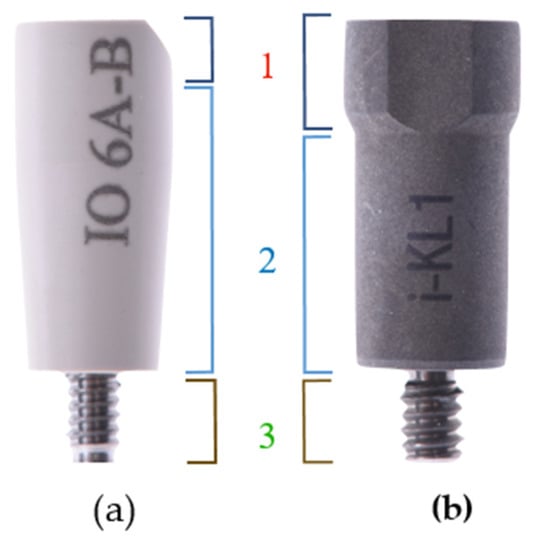 | Fluegge et al., 2017 [40] | -23: (REF K2600.3810) -25: (REF K2600.4310) -35: (REF 048.168)-36: (REF 025.4915) | -23/25: Height of 10 mm and a diameter of 4.3 mm (23/25) -35: Height of 10 mm and a diameter of 5 mm -36: Height of 9 mm and a diameter of 4 mm | Not reported | D250 (3Shape, Denmark) | Rapidform (Rapidform, Korea) |