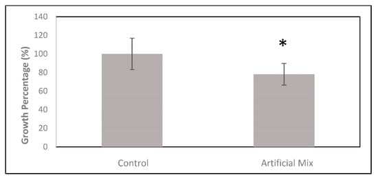 Growth of C. vulgaris exposed to artificial mixture of heavy metals (Artificial Mix.) (*) No significant difference to control.