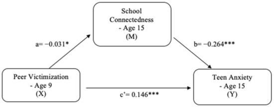 School connectedness would mediate the association between peer victimization and teen anxiety.