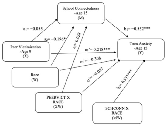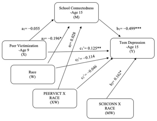 Research on the role of race as a moderating variable in understanding the associations among peer victimization, school connectedness, and adolescent mental health is limited. One area of exploration has involved the study of transgendered youth of color. For example [12], examined the moderating effect of race on the mediational relationship between peer victimization, school belonging, and mental health outcomes. The results revealed that being a transgender youth of color did not necessarily differentiate the negative impact of peer victimization on mental health and belonging. Similarly, [54] examined the relationships among peer victimization, school belonging, and substance abuse among high school teenagers. Their results showed that transgendered youth of color did not report greater drug use than their White peers, despite experiencing more victimization [54]. In sum, more research is needed to contribute to the current literature and to understand the effects of race on the relationships between peer victimization, school connectedness, and mental health outcomes in a diverse sample of economically disadvantaged youth.