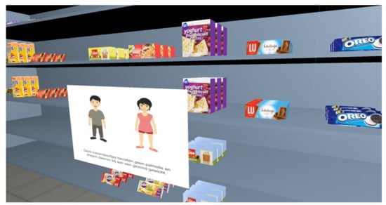 - Karkar, A.; Salahuddin, T.; Almaadeed, N.; Aljaam, J.M.; Halabi, O. A Virtual Reality Nutrition Awareness Learning System for Children. In Proceedings of the 2018 IEEE Conference on e-Learning, e-Management and e-Services (IC3e), Langkawi Island, Malaysia, 21–22 November 2018; IEEE: Piscataway, NJ, USA, 2018; pp. 1–6. [Google Scholar]