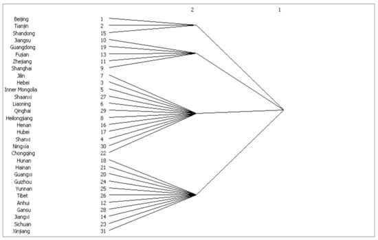 - The block model analysis (CONCOR analysis) in social network analysis is used mainly to describe the roles and status of each province in the overall medical economic spatial network structure. To facilitate an intuitive analysis, the complex network can be simplified into a block model and image matrix. The spatial clustering method is used to divide the network into blocks. The block models reflect the role of each block in the network. Block models were proposed by White in 1976 [26] to analyze the role of network node groups. Referring to the indicators of Wasseman and Faust to evaluate the internal modules of the network [27], the regional medical economic spatial association network can be divided into four sections: the net beneficial block, bidirectional spillover block, net spillover block, and broker block. The members of the net beneficial block have more internal relationships, fewer external relationships, and fewer spillover effects on other blocks. The members of the bidirectional spillover block have more relationships with members of this block and members of other blocks but receive fewer external contacts and have a two-way spillover effect on members in other blocks. In the broker block, there are fewer connections between members within the block, and members of other blocks receive and issue relationships, acting as a “bridge” in the network. The members of the net spillover block have more relationships with members of other blocks and have fewer external relationships. Through CONCOR analysis, this study examines the inter-province medical economic spatial association network and the internal structure status of the block.