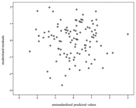 Studentized residuals were plotted against the unstandardized predicted values to examine homoscedasticity.