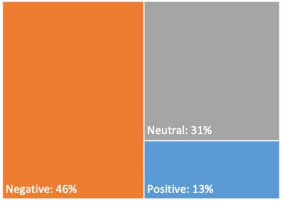 Of all the Tweets analysed until saturation reached at n = 500 (see Figure A2), 46% carried negative sentiments regarding the panic buying phenomena of toilet paper, 13% carried positive sentiments, with the remaining 31% having neutral sentiments (see Figure 2). Tweets were 3.5 times more likely to carry negative sentiments than positive sentiments.