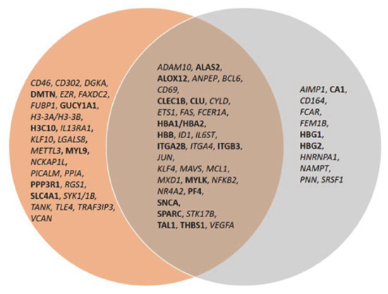 - Kassouf, M.T.; Hughes, J.R.; Taylor, S.; McGowan, S.J.; Soneji, S.; Green, A.L.; Vyas, P.; Porcher, C. Genome-wide identification of TAL1’s functional targets: Insights into its mechanisms of action in primary erythroid cells. Genome Res. 2010, 20, 1064–1083. [Google Scholar] [CrossRef]