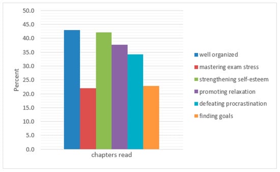 N = 372 website visitors clicked on the survey link; N = 114 questionnaires were completed fully. Most of the respondents looked at the chapters “well organized” (43%) and “strengthening self-esteem” (42.1%), see also Figure 2.